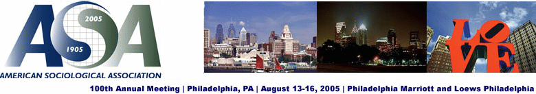 | Welcome We hope you joined us at the American Sociological Association's 100th Annual Meeting, held August 13-16, in Philadelphia. The convention theme, "Comparative Perspectives, Competing Explanations: Accounting for the Rising and Declining Significance of Sociology," explored the wide historical sweep of Sociology and addressed key aspects of the social history of the discipline. | ||||||