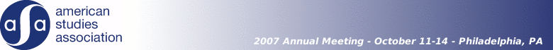 | "America Aqui: Transhemispheric Visions and Community Connection," October 11-14, 2007, Philadelphia, PA As Co-Chairs of this year's program, we have worked closely with a fabulous committee to put together the 2007 ASA Program for our upcoming meeting in Philadelphia, Pennsylvania, on October 11-14. The three of us extend our deepest appreciation to our resolutely interdisciplinary committee. These dedicated people have gone above and beyond what was asked of them to review hundreds of proposals, sit in a hotel for a weekend, and create additional panels to round out intellectual gaps among the submitted panels and papers. Together we have created a magnificent program that will appeal to a wide range of our association's members. We also want to thank all of the incredible staff at the ASA headquarters, especially John Stephens and Kristen Hodge who since the meeting have worked overtime to bring this program together. Without their knowledge and dedication, assembling such a diverse, complex program would be impossible. Finally, we have all had the honor of working with our President, Vicki L. Ruiz, who has participated in the day-to-day process of pulling together this program as well as been a guiding, sage presence. First, before we discuss the intellectual content of the program, we want to share a few insights we have learned about the process and offer some suggestions for the future. The ASA continues to use an on-line system and with the exception of just one or two mishaps, the submission process worked well. If numbers are any indication, the system encourages a wider array of folks to participate in the program. This year we had 298 panels and 471 papers submitted from all over the world for our review. Our only regret is that there were too many exciting panels; more than we could fit into the program. After an exhausting, but amazingly stimulating weekend discussing the program, the committee decided on 201 pre-packaged sessions and 147 individual papers made into 45 sessions. In total we have over 1100 participants scheduled for this year's meeting. In particular, the individual papers selection was highly competitive and often depended on the ability to match single submissions with other related papers. Given the considerable time it takes to form individual papers into sessions, we strongly encourage our members to submit a full panel rather than a single paper whenever possible. There were a few kinks left in the notification system once panels had been accepted, but the ASA office has taken note of these issues and hopefully will continue to improve the system. For next year, we encourage proposers to follow the directions precisely and to start the application process early. The ASA staff is eager to help people submit their sessions and papers, but it is much easier to do that work when the staff is not pushed up against the deadline. There are a number of ways that our membership could help both themselves and the program committee when using the on-line system. First, ASA guidelines clearly state that a member may appear only once on the program. When members do not heed this advice, they create more work for the program committee as well as jeopardize both of the panels for which they have committed themselves. Second, we encourage members who have agreed to participate in a panel or have submitted a paper not to then double register as commentator and chair because the system does not allow us to sort these overlaps easily. Third, the committee unfortunately had to reject panels-including a number that approached this year's theme in compelling, significant ways-that did not reflect institutional diversity. One of the benefits of attending a national conference is to interact with scholars from institutions other than our own. So, when proposals arrived with presenters from only one institution they were rejected out of hand regardless of content. Finally, it is important to remember that the competition for these slots was extremely competitive. If your panel or paper was not accepted this year, we do encourage you to resubmit a proposal for the 2008 meeting. Now to the content of the program. The program committee has constructed a program that both reflects the diversity of our association as well as emphasizes the theme of, "America Aqui: Transhemispheric Visions and Community Connections." As you will see, this program has numerous sessions on transnational, borderlands, and international topics that cover a wide array of regions, disciplines, and time periods. In emphasizing the Transhemispheric, we thought about both Atlantic and Pacific crossings - not to mention equatorial transversals -- and hope that there will be lively discussions in these areas. This year we were also fortunate to have Myla Carpio on our Program Committee and she has worked to pull together a number of exciting panels that feature Native scholars from across a variety of fields. This year, we also paid particular attention to encouraging and developing sessions that had a temporal focus before 1900. Scholars of nineteenth century and the colonial era will find much to lure them to Philadelphia. Finally, there are a number of sessions that emphasize the arts as well as the cultural and performative aspects of our field by encouraging discussions with artists and other disciplines. We are quite thrilled to have two special performances at our meeting. Coco Fusco has agreed to perform "A Room of One's Own: Women and Power in the New America, A Performance about the expanding role of American Women in the War on Terror." This event will be held on Thursday night at the Painted Bride and will require a reservation as well as a small fee. Second, E. Patrick Johnson has also agreed to perform "Sweet Tea," which is based on his interviews with gay African-American men in the South. So, please keep an eye out for details on these spectacular opportunities. Other featured panels will inc